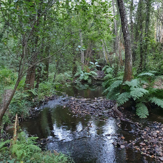 No Verão vivo sobressaltada, tropeçando nos desassossegos, caminhando à boleia de informações e dançando ao ritmo da natureza. A temperatura derrete-me o discernimento e as imensas horas que compõem um dia toldam-me o discurso. Mas disserto habilmente sobre a palavra gratidão, sobre o silêncio fortuito, sobre a tranquilidade caridosa. É neste trilho, exausta e dorida, com o corpo inchado e a mente ocupada, que me entrego à generosidade da diversidade latente. A humidade cola-se à pele, ouvem-se sons aglutinados em diferentes intensidades e transpira-se ausência. A força das raízes apodera-se da história presente. As paredes centenárias, camaleónicas, escondem-se na vegetação mas vislumbram-se na penumbra. Sou engolida pelo tempo. Marcho a passo lento, sinto tonturas ao pisar o minúsculo passadiço, trémula, tento aderir ao cabo como se de uma hera me tratasse. Solto impropérios quando sinto o sangue a escorregar na pele e uma dor aguda a apertar me o peito. As silvas defendem os seus direitos. Crescem ao longo do muro de pedra, absorto pelas briófitas e imiscuem-se nos fetos e nas figueiras. As dissimuladas borboletas exibem as suas bonitas cores numa coreografia envaidecida, para de seguida, se esconderem nas árvores e outras plantas. Ouço a cascata ao fundo. A ribeira, que outrora alimentava os moinhos a montante, corre mais lenta, até se precipitar na clareira. O pequeno lago formado desenha novamente o seu leito até encontrar o seu curso. Continuo a caminhada. Os pés nem sempre acompanham o passo, tropeço neles, mas sigo. A escuridão verde da vegetação densa dá lugar a um céu laranja de pôr do sol. A ribeira segue até desaguar no gigante curso de água um pouco mais adiante enquanto eu sigo para casa. Regresso desassossegada, pois continua a ser verão e embora encontre o ritmo das notas musicais ao som da natureza, continuo a derreter os pensamentos ao sabor da temperatura que a estação tem para ofertar. As libelinhas, borboletas, peixes, fetos, figueiras, trepadeiras e lagares escondem uma história esquecida na floresta. Eu revivo-a num silencioso e infinito pensamento. Aqui na Ribeira da Foz. Um oásis de conservação da natureza, no concelho da Chamusca, que convida à sua visita.